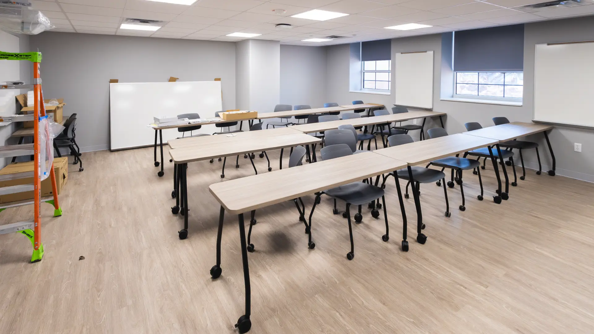 Inside, the first and second floors have reached substantial completion. Furniture installation is in progress on the first and second floor. The Teacher Education and Behavioral and Social Sciences Division offices will be relocating to the first floor. The Admissions Team is expected to move to the second floor by early August. Third-floor flooring is nearly complete, with auditorium seating, a drop-down partition, furniture and custom artwork to be installed in the coming weeks. Shawnee Hall will be open at the start of the fall 2025 semester, though no classes are currently scheduled in the building.