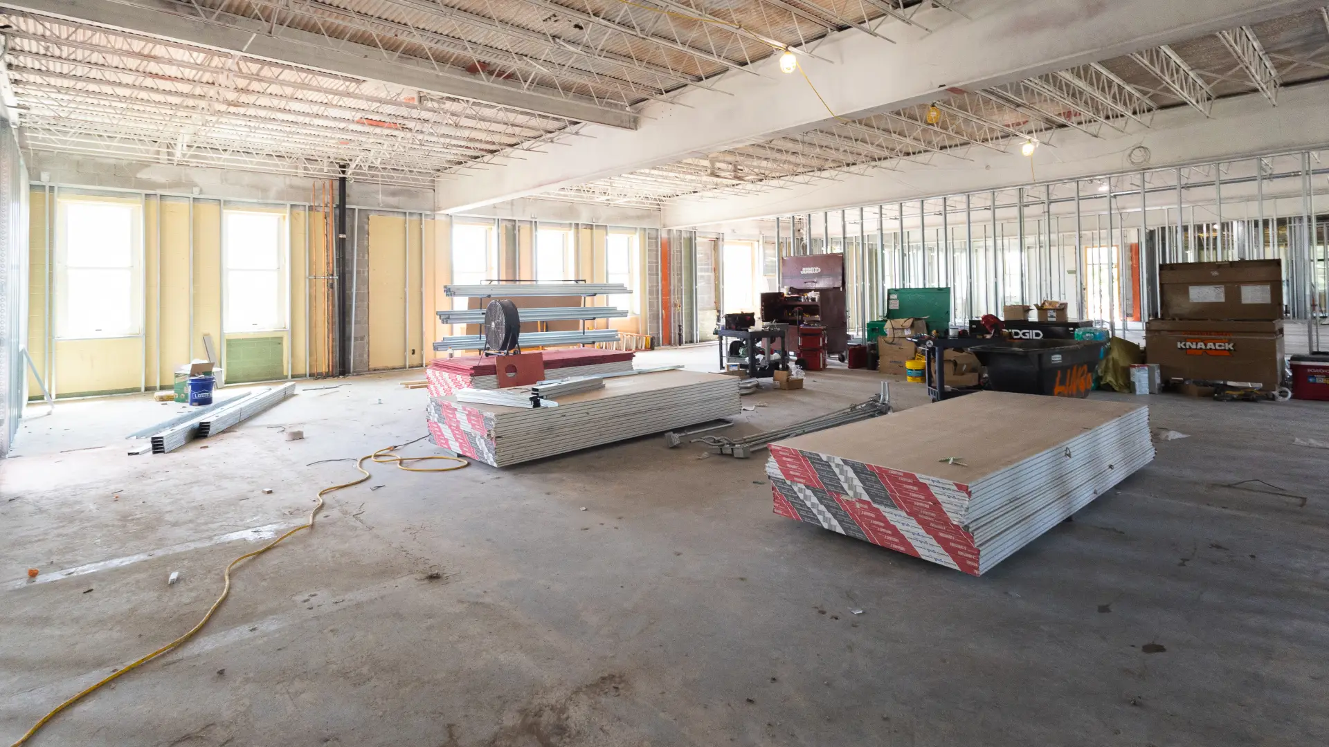 Interior framing for the second and third floors is nearly complete. Once framing wraps up, plumbing, electrical and HVAC rough-in work will begin. The renovation remains scheduled for completion by the start of the spring 2026 semester.