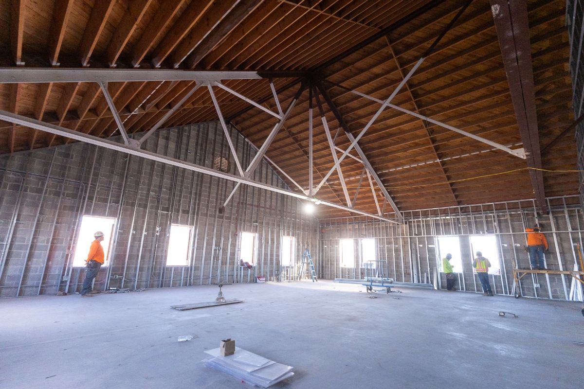 Work on Raley Chapel is progressing well. Framing and electrical rough-in are nearing completion in the east wing of the building on the first and second floors, where OBU’s band and choir programs will be located. In the west wing, framing is underway on the second floor for the future Raley Drawing Room. Overhead rough-in for mechanical, electrical, plumbing and fire suppression systems in these spaces will take place in the coming months. Framing for IT, fire suppression and electrical rooms on the first floor is now complete and spray foam insulation for the attic is nearing completion.