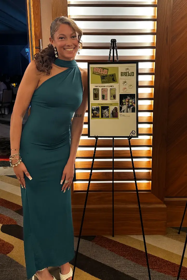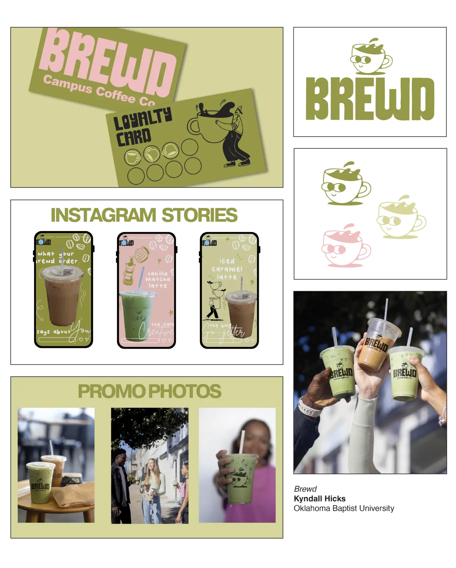 Hicks, a graphic design major with a marketing minor from Tulsa, earned a Silver Addy Award in the integrated brand campaign category for Brewd Coffee. The project, created as part of OBU’s advertising design class, featured a comprehensive identity system for “Brewd,” a fictitious campus coffee shop. Hicks extended the brand across lifestyle photography, product applications, social media platforms and promotional enticements such as a loyalty punch card.